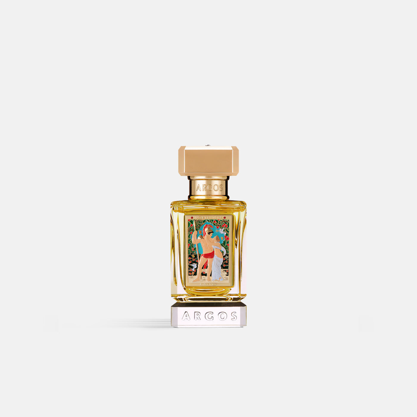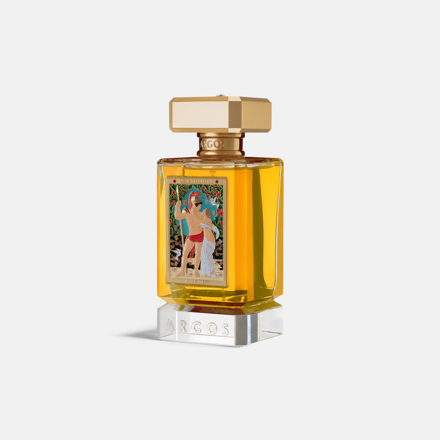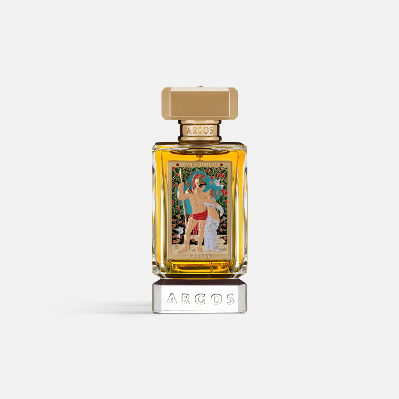 This enchanting fragrance symbolizes the triumph of love over war. Opening with Bright Bergamot, Orange, Lemon, Sweet Tuberose, Rose Petals, Raspberry, and Seductive Blackcurrant, Argos LOVE TRIUMPHS OVER WAR transitions into its Irresistible heart notes of Violet, Clove, Cinnamon Bark, Geranium, Gardenia, Iris, and Ylang Ylang. Base notes of Warming Amber, White Musk, Cashmere Wood, Mysore Sandalwood, Patchouli, and Vanilla produce a beautifully captivating and disarming fragrance.