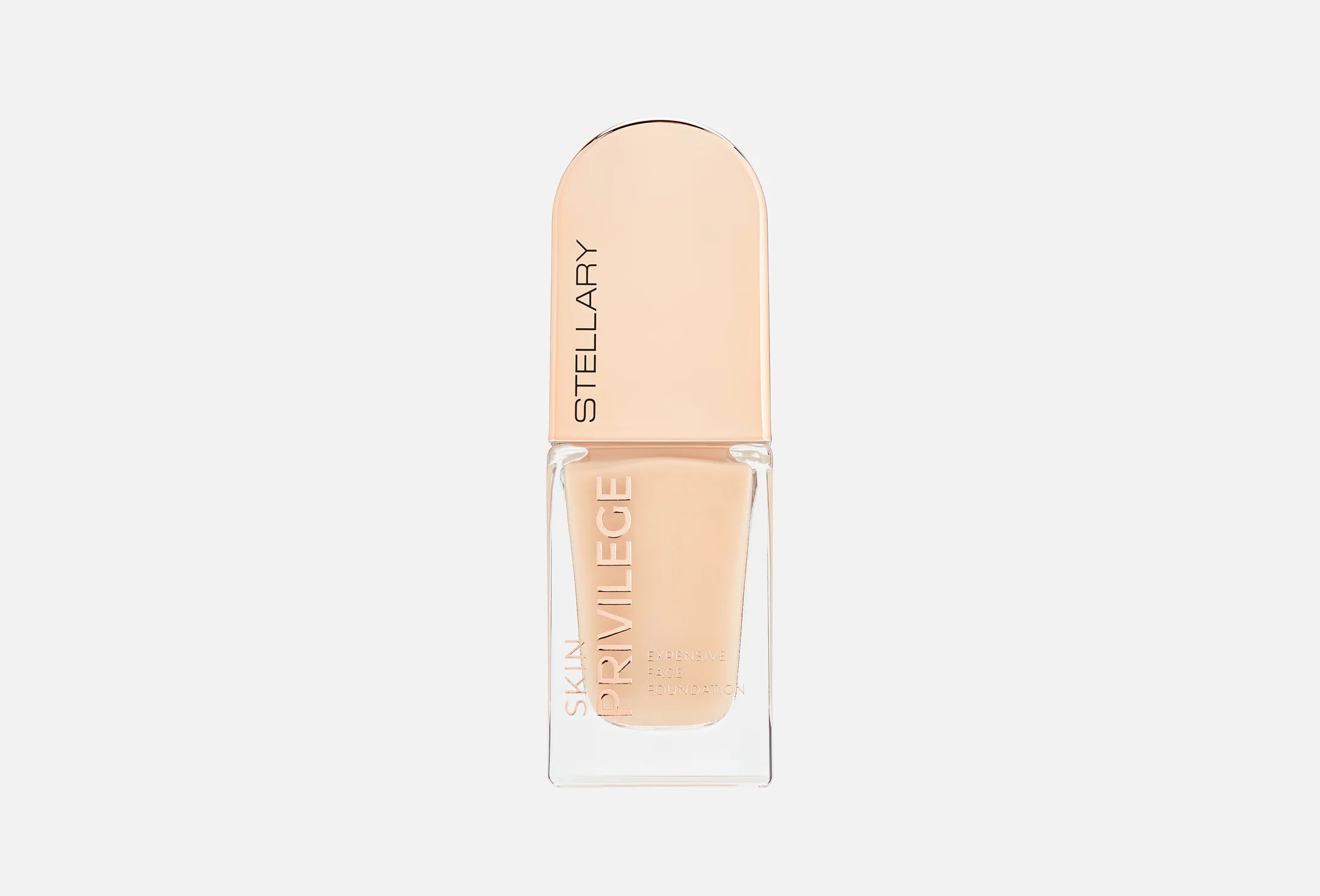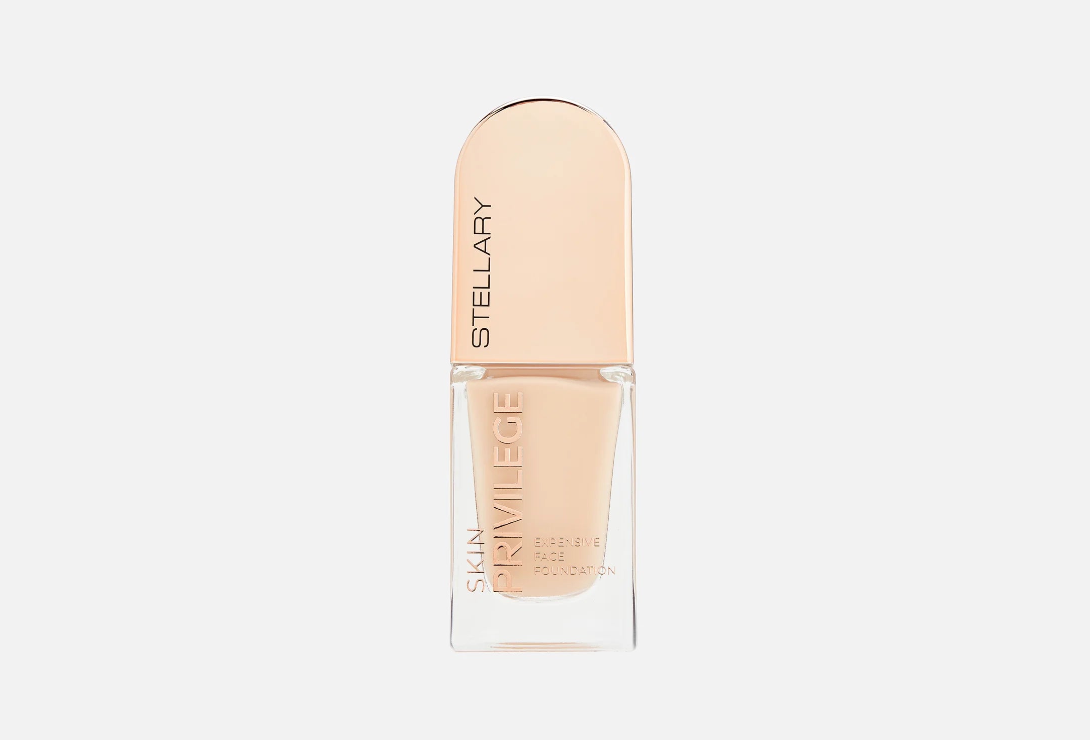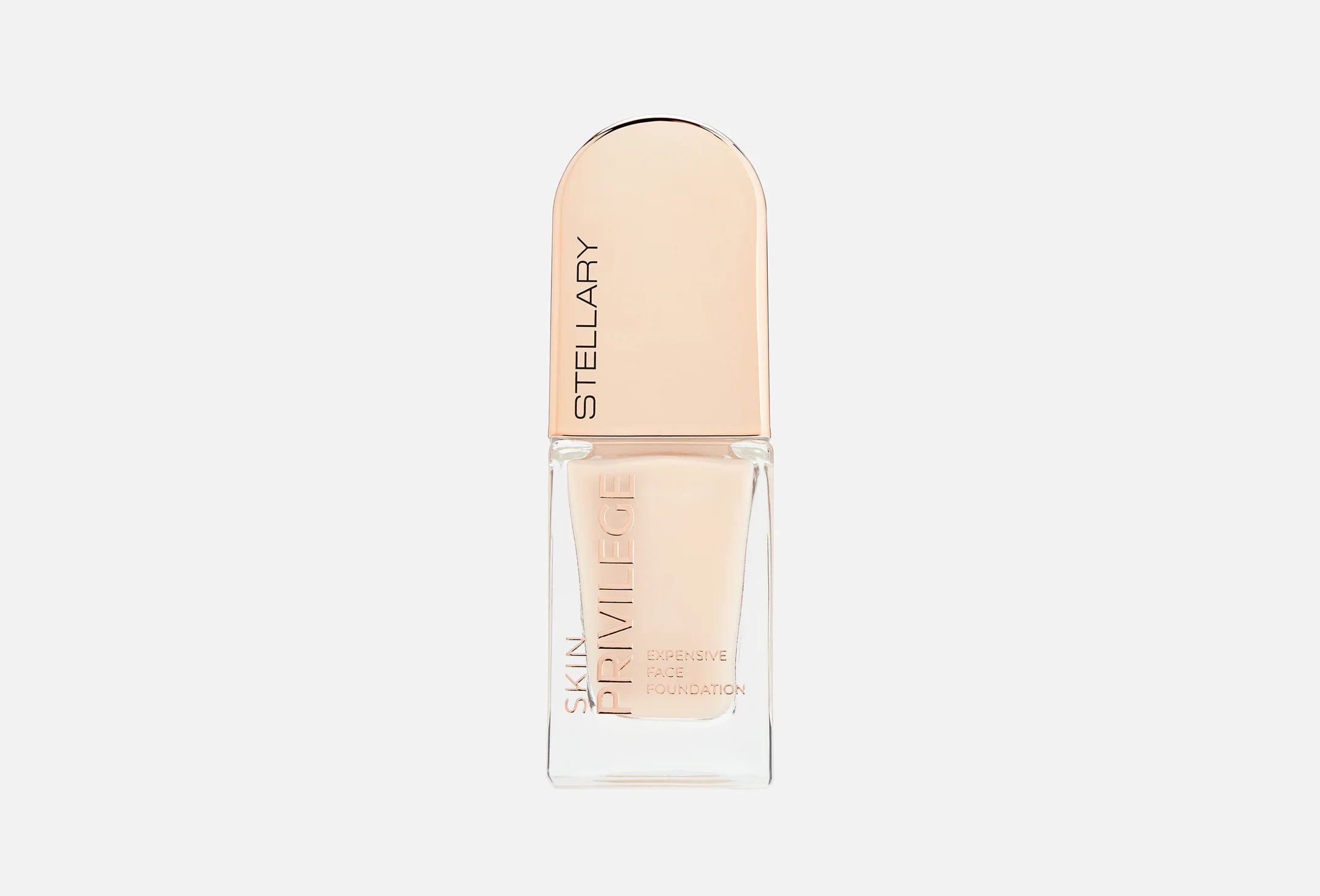 SKIN PRIVILEGE foundation delivers the privilege of perfect, well-groomed skin with a silky, weightless texture that glides on like a second skin. It evens tone, smooths texture, conceals imperfections, and leaves the complexion radiant, healthy, and naturally flawless. The flexible formula provides light-to-medium, long-lasting coverage without a mask effect, while vitamin E, niacinamide, and four types of hyaluronic acid ensure deep, continuous hydration and skin comfort throughout the day. Available in five universal shades suitable for all skin types and undertones, the foundation comes in a sleek glass bottle with a precise dispenser and elegant arched packaging accented with gold details for a refined, luxurious finish.