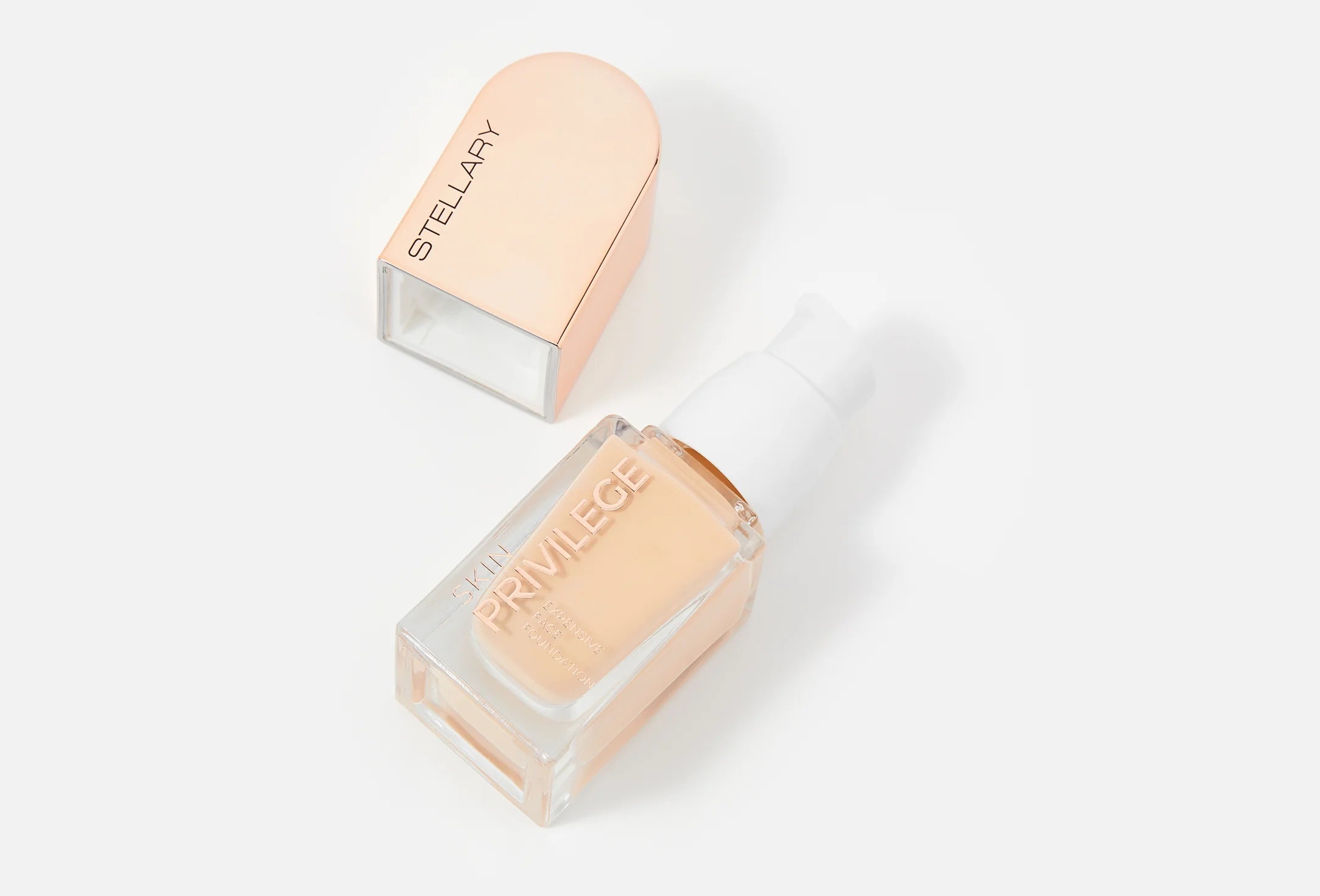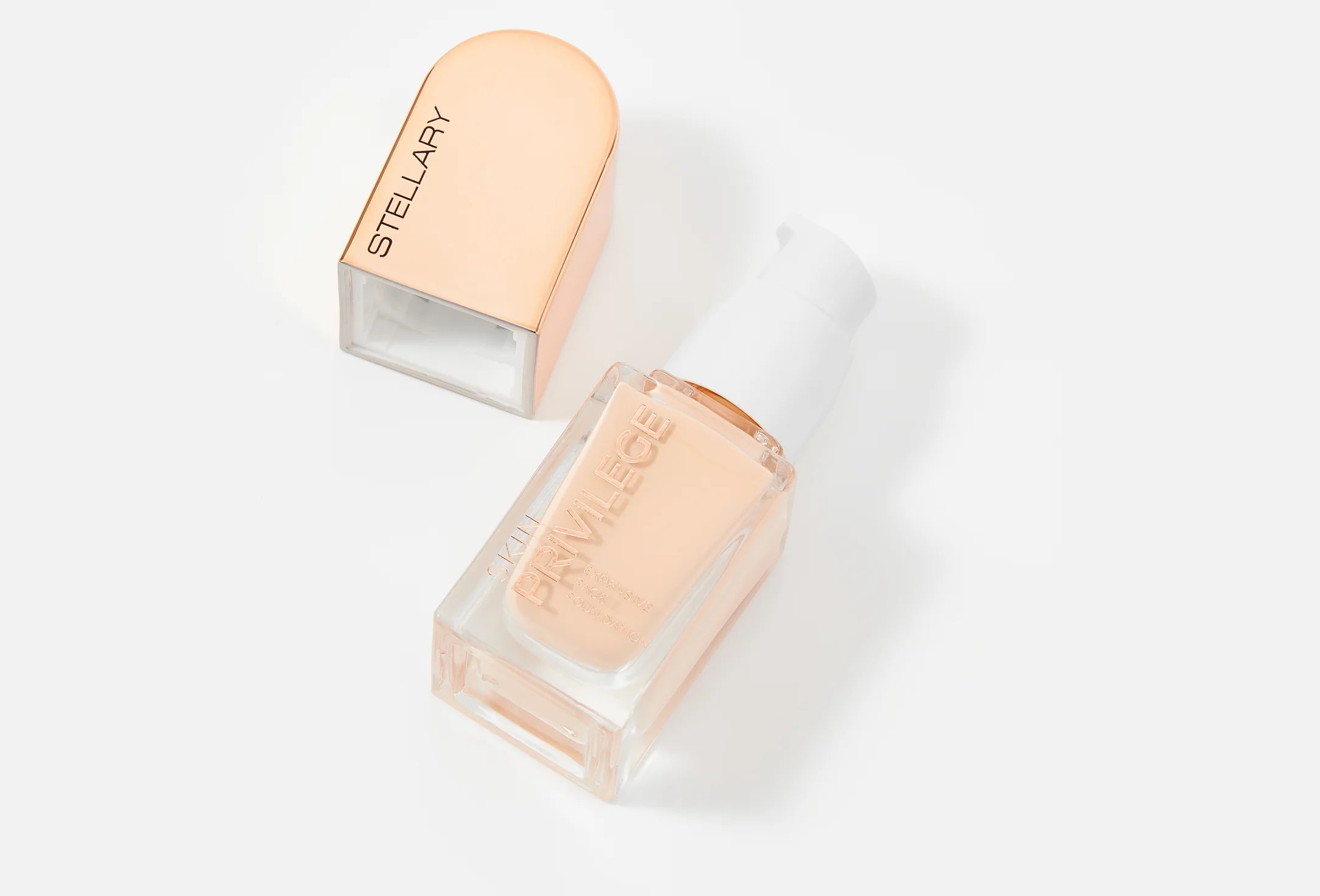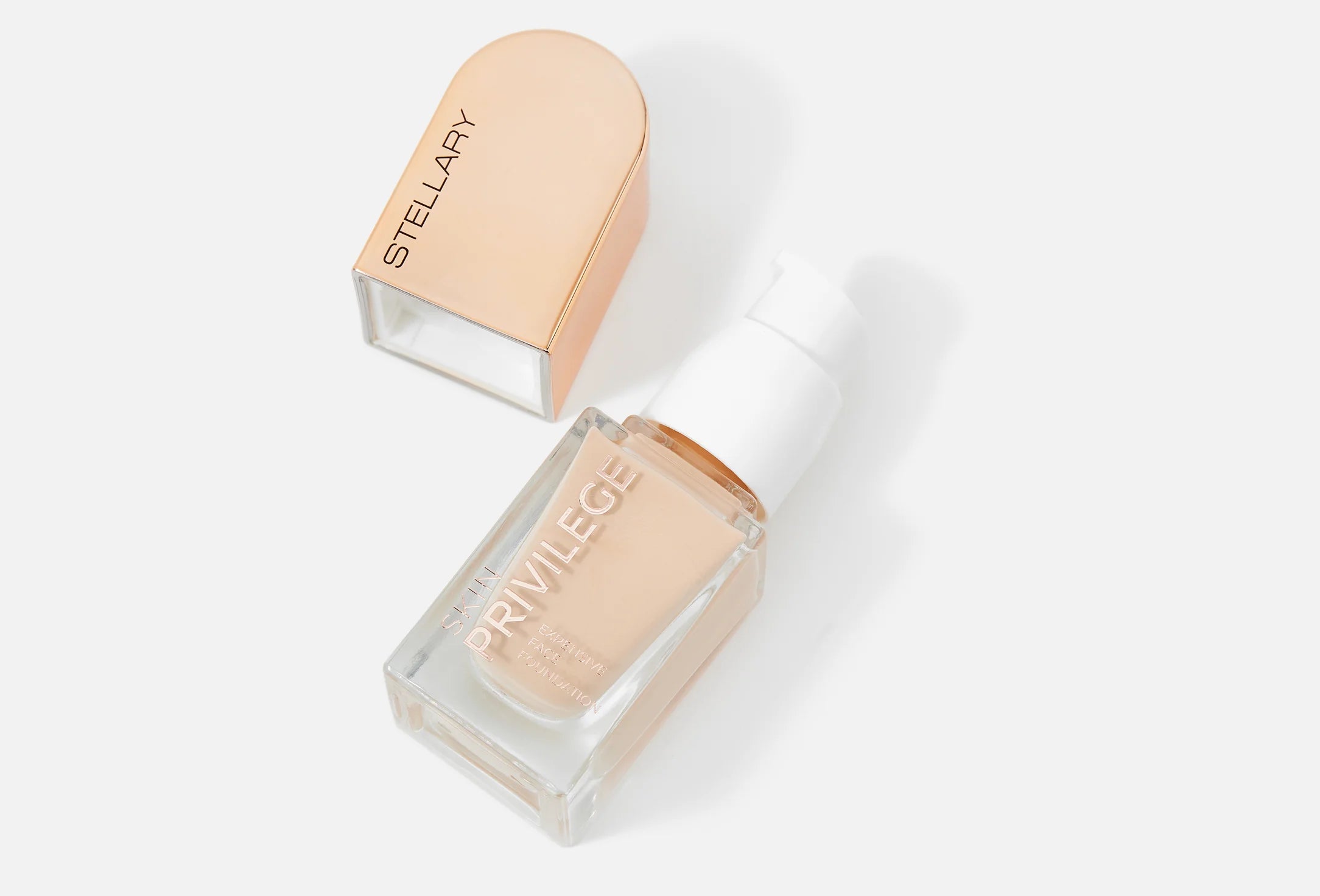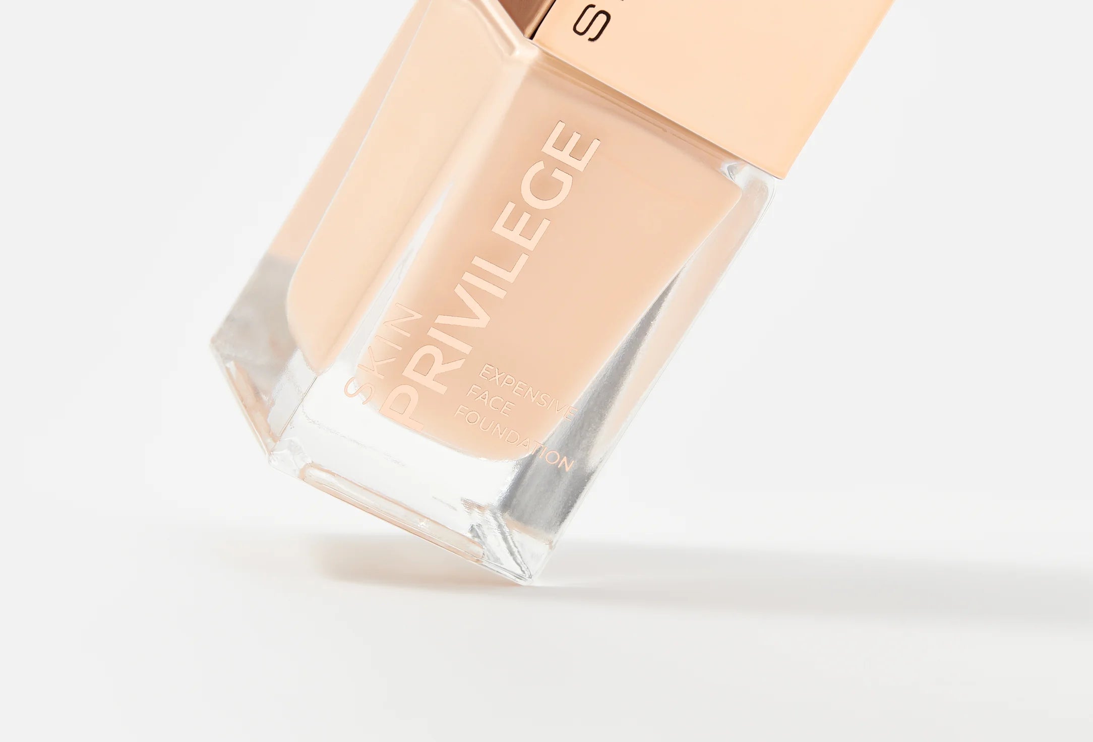 SKIN PRIVILEGE foundation delivers the privilege of perfect, well-groomed skin with a silky, weightless texture that glides on like a second skin. It evens tone, smooths texture, conceals imperfections, and leaves the complexion radiant, healthy, and naturally flawless. The flexible formula provides light-to-medium, long-lasting coverage without a mask effect, while vitamin E, niacinamide, and four types of hyaluronic acid ensure deep, continuous hydration and skin comfort throughout the day. Available in five universal shades suitable for all skin types and undertones, the foundation comes in a sleek glass bottle with a precise dispenser and elegant arched packaging accented with gold details for a refined, luxurious finish.